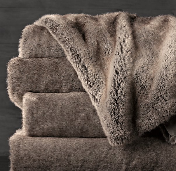 Faux fur blankets remind me of one of my roommates. Restoration Hardware has the softest ones that I have come across so far.
